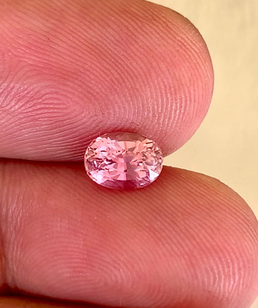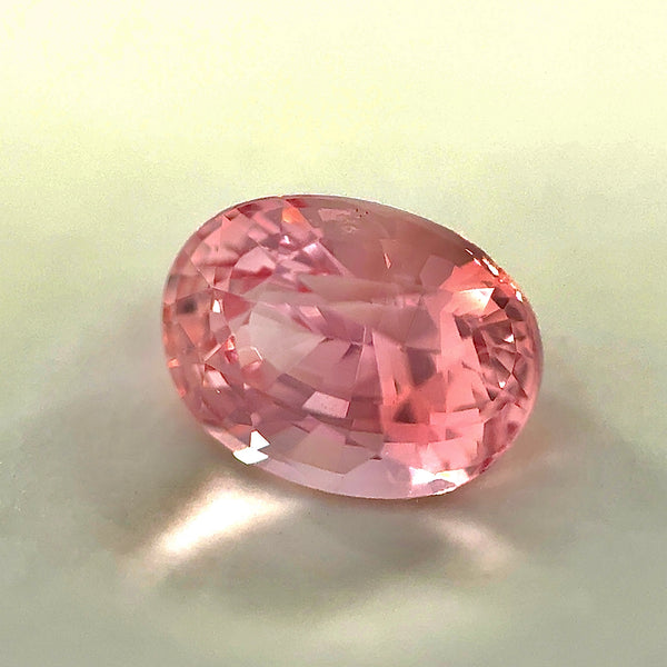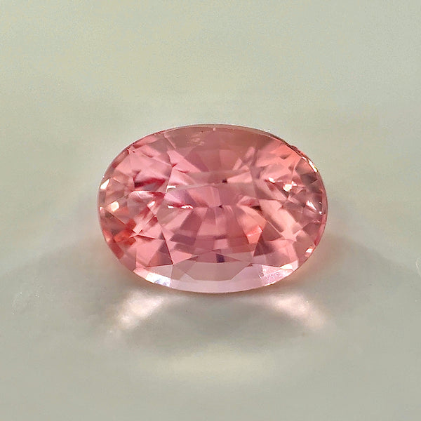 This beautiful 1.56 carat Padparadscha sapphire displays a classic pink-orange Padparadscha hue, prized for its warmth, elegance, and rarity. Expertly fashioned in an oval cut, the stone shows excellent light return, lively brilliance, and a graceful face-up appearance.